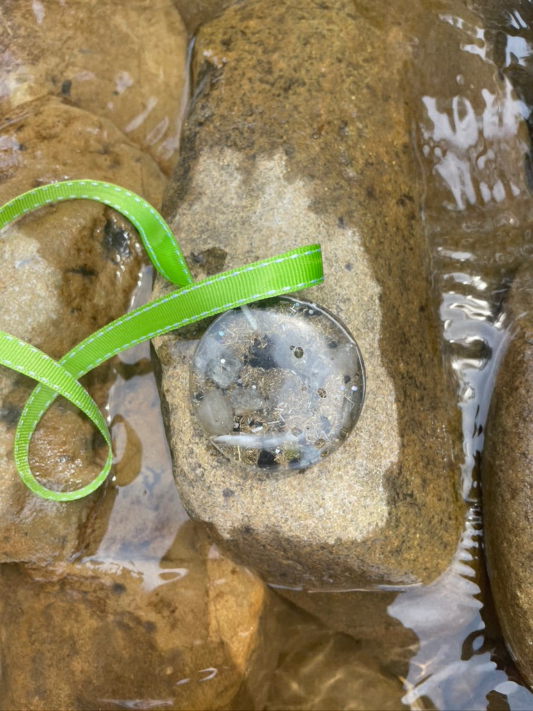 This Flower of Life Orgone pendat contains Quartz crystal, Selenite, Labradorite, Shungite, Green Aventurine, Watermelon Tourmaline, Rose quartz, copper, mixed metals and galactic sparkles.