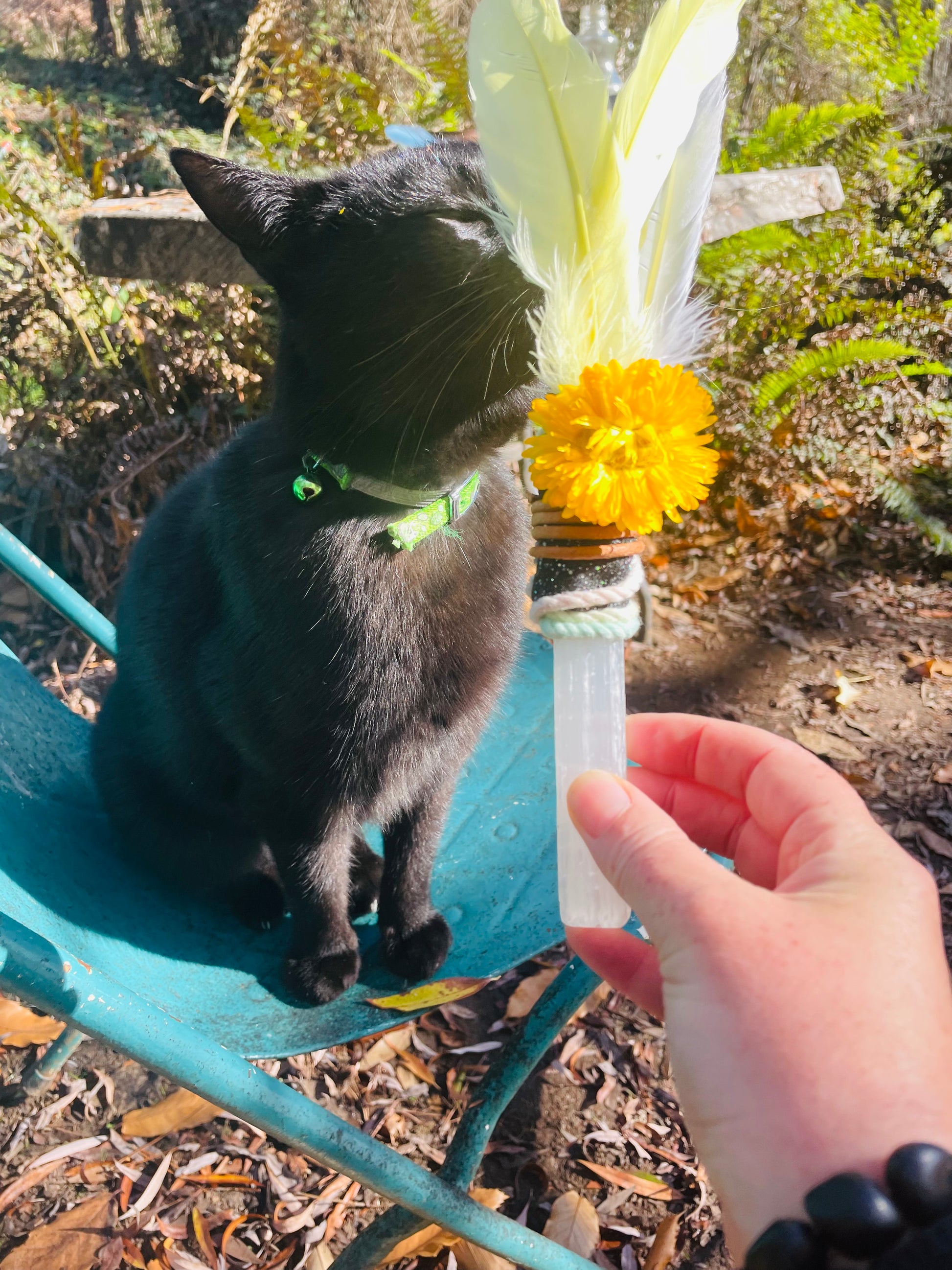 This mini Selenite wand promotes peace, swipe over your body to remove negative energy. Selenite is high vibrational and connects you to the higher realms. Adorned with a everlasting flower representing eternal love and hope.